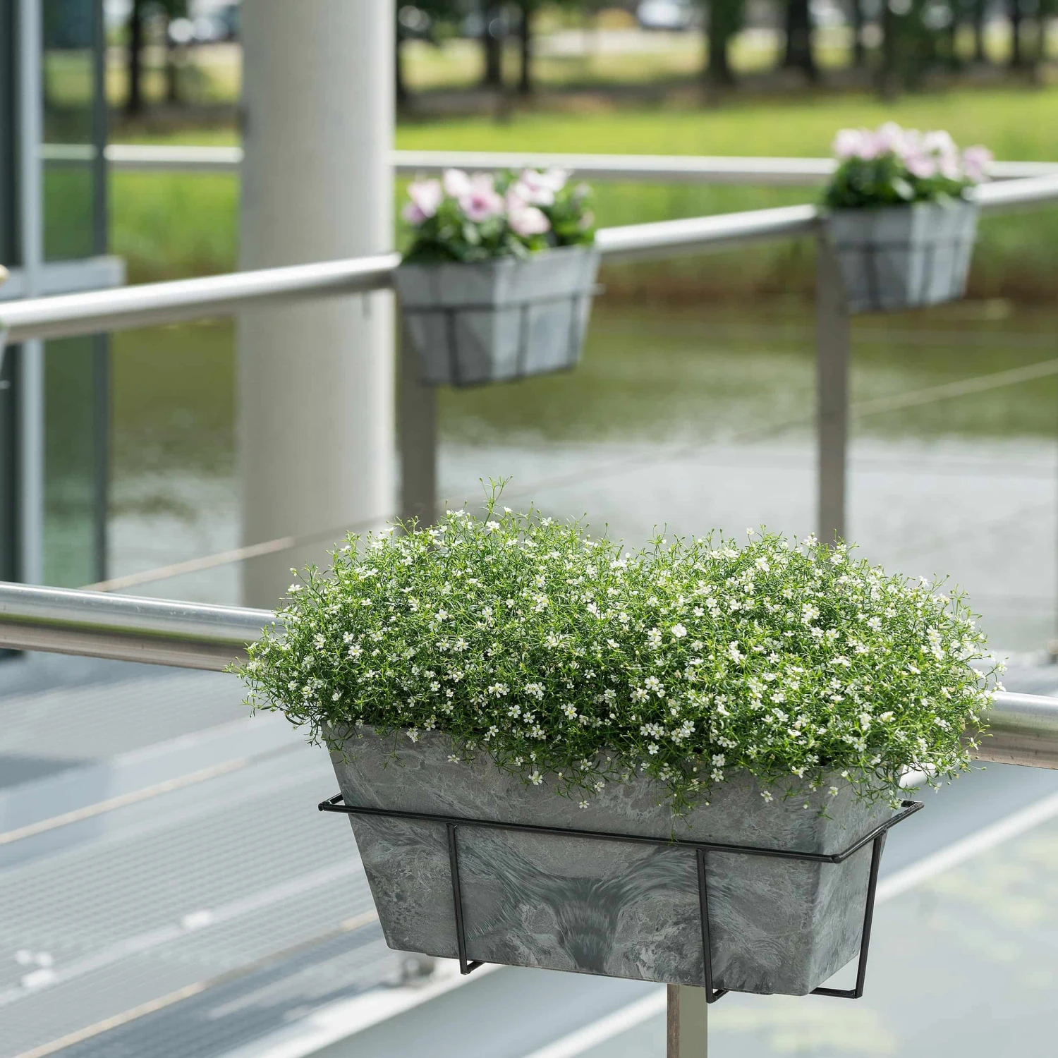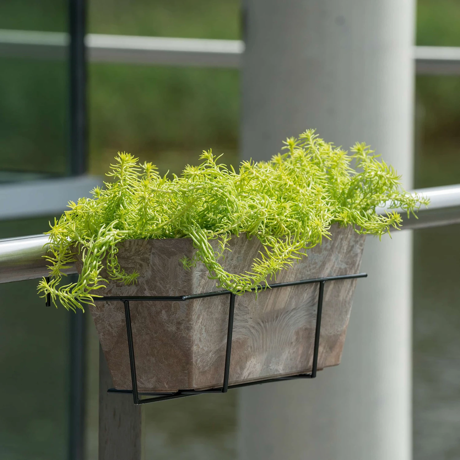 Die pulverbeschichteten Metallartikel trotzen jedem Wetter und halten Ihre Töpfe und Kästen am gewünschten Ort. Durch die Verwendung von dünnem Metall hat der Halter ein geringes Eigengewicht, hält aber trotzdem Ihr Gefäß mit Pflanzen und Erde sicher fest.