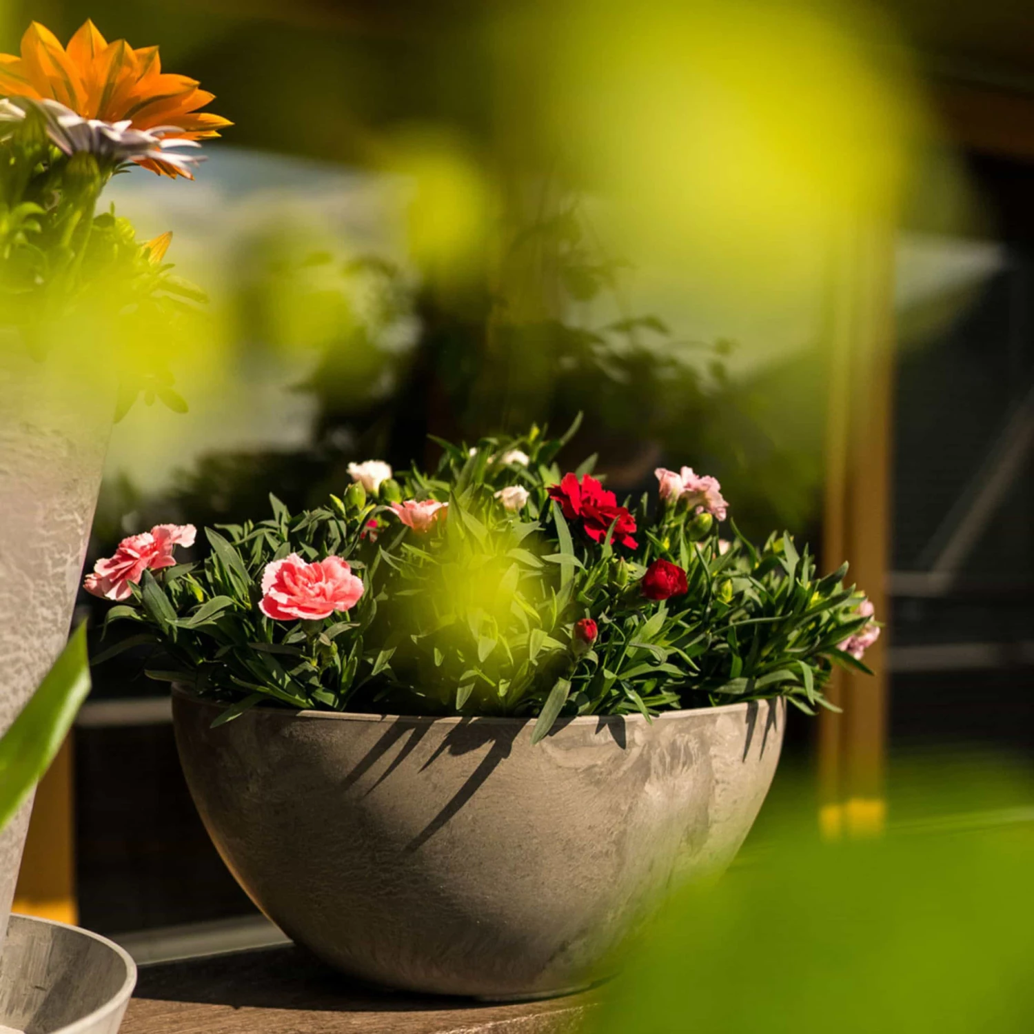 Ihr Blumenschmuck auf dem Balkontisch, wird durch die ARTSTONE Blumenschale FIONA zu einem wahren Hingucker.