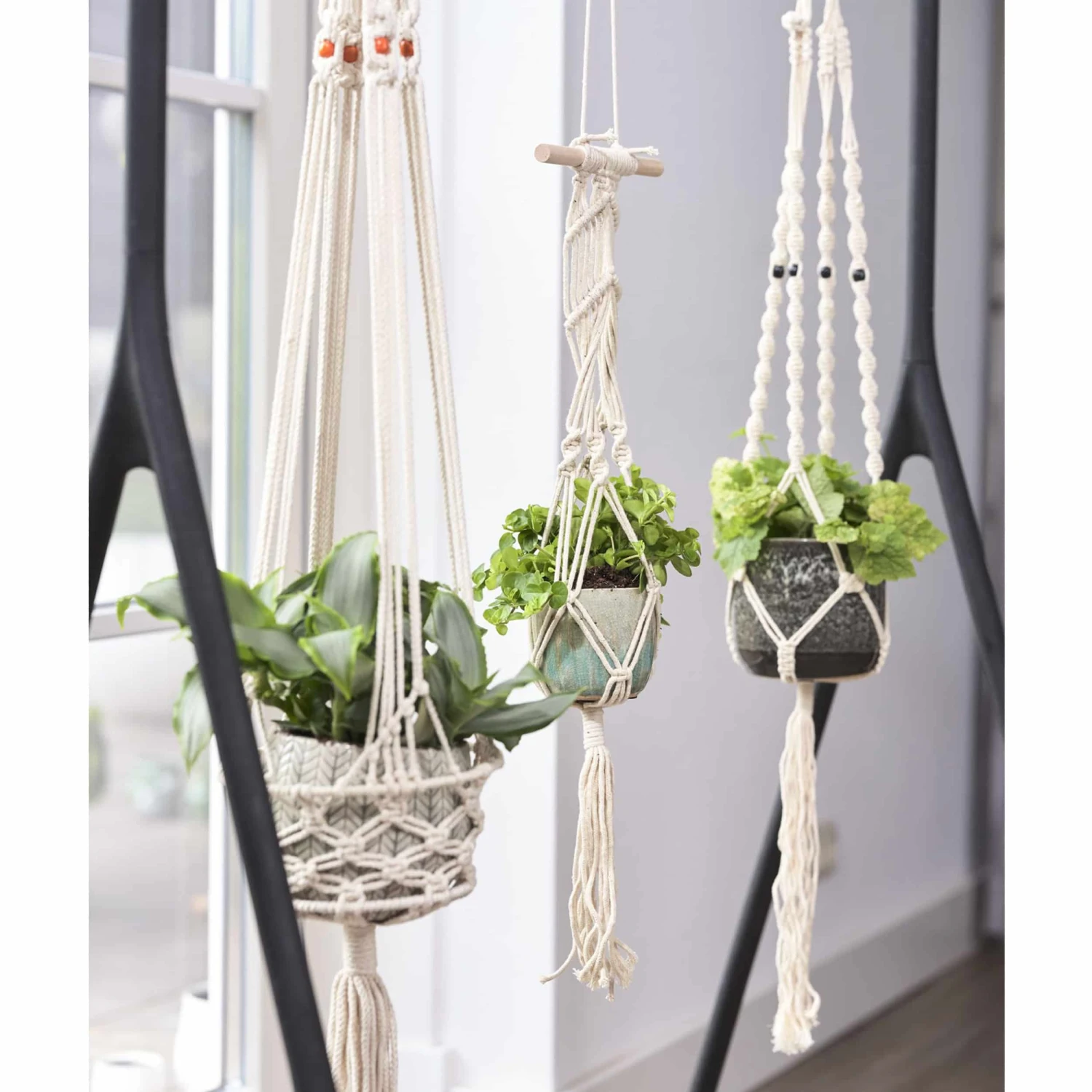 Makramee sind im eigenen Großstadtdschungel unverzichtbar. Mit den natürlichen und verspielten Blumentopfhaltern, kannst du deine Lieblingspflanzen in verschiedenen Töpfen in deinem Wohnzimmer, Küche oder Balkon dekorieren. Mach deine Wohnräume einfach grüner.