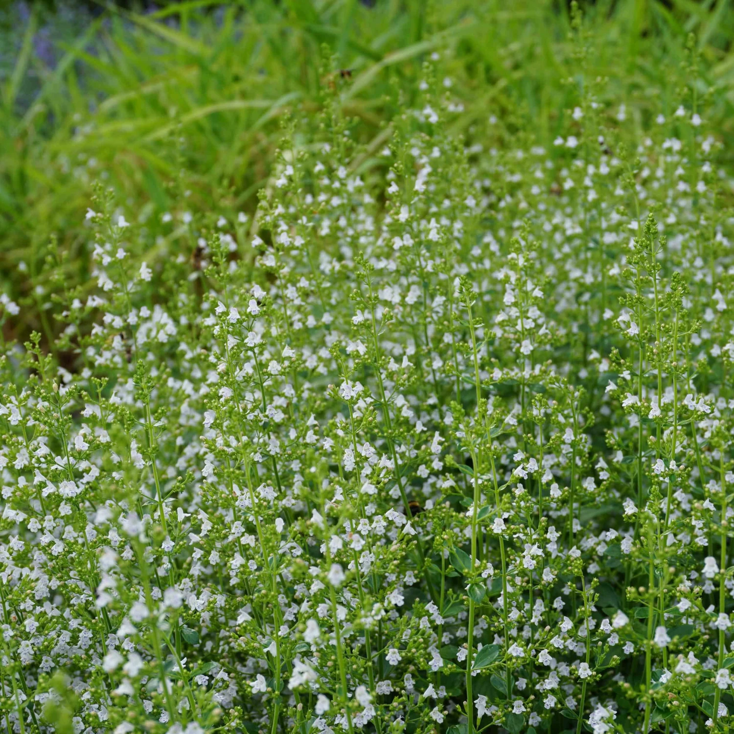 Die Kleinblütige Bergminze ‘Triumphator’ (Calamintha nepeta) überzeugt sowohl mit ihrem Aussehen als auch mit ihrem Geruch. Ihre weißen bis hellvioletten Blüten zeigen sich von Juni bis September und bilden einen tollen Kontrast zum sattgrünen Laub. Außerdem verströmt Calamintha nepeta in der warmen Jahreszeit einen minzigen Duft, der von Mensch und Tier als angenehm wahrgenommen wird. So kommt es, dass sich eine Vielzahl von Insekten von dem Duft angezogen fühlen – das gilt vor allem für Honigbienen und Hummeln. Diese freuen sich besonders über das späte Nahrungsangebot, wenn viele andere insektenfreundliche Stauden bereits verblüht sind.