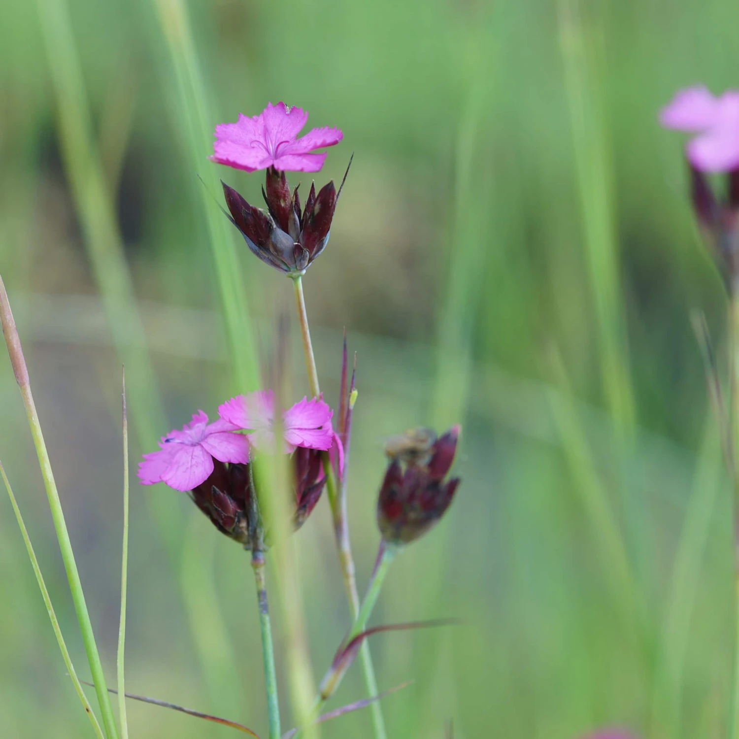 Die Karthäuser-Nelke (Dianthus carthusianorum), in Österreich auch Steinnelke genannt, ist eine heimische Wildstauden-Art. Während der Blütezeit von Sommer bis in den Frühherbst hinein locken ihre leuchtenden purpur- bis rosaroten Blüten und der zarte Nektarduft zahlreiche Schmetterlinge an. Der botanische Name Dianthus bedeutet so viel wie ‘Götterblume’ (griech. dios= Gott, anthos= Blume). Die Karthäuser-Nelke liebt einen warmen, sonnigen Standort, im Winter kann sie jedoch problemlos Minusgrade überstehen.