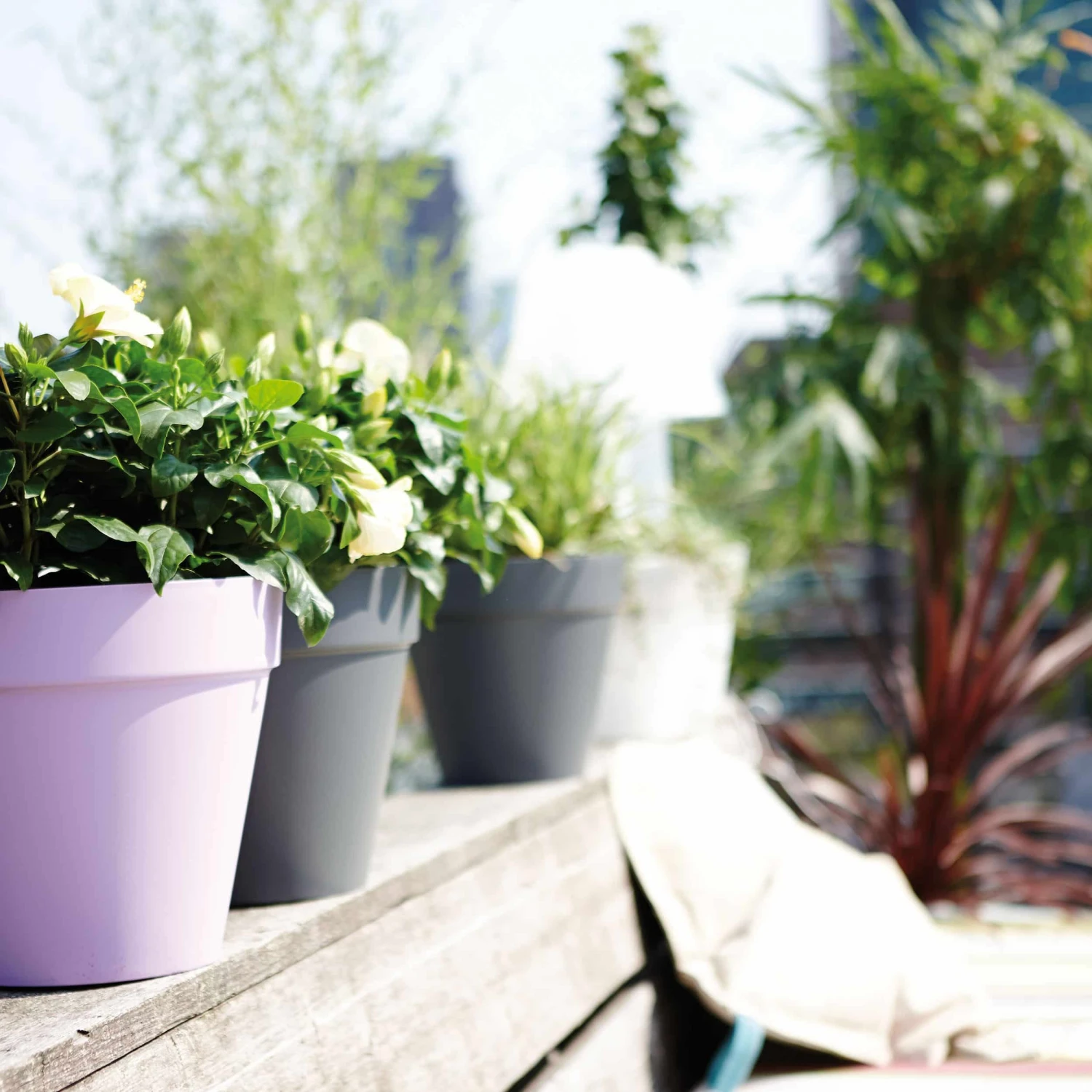 Die Gefäße sind erhältlich in unterschiedlichen Formen, bunten Farben und Größen. Die größeren Gefäße ab einem Durchmesser von 40 cm verfügen zusätzlich über Rollen am Gefäßboden, sodass auch schwer bepflanzte Gefäße flexibel bewegt werden können – sehr praktisch z.B. zum Überwintern von Pflanzen. Für alle Loft Urban Gefäße sind passende Untersetzer verfügbar.