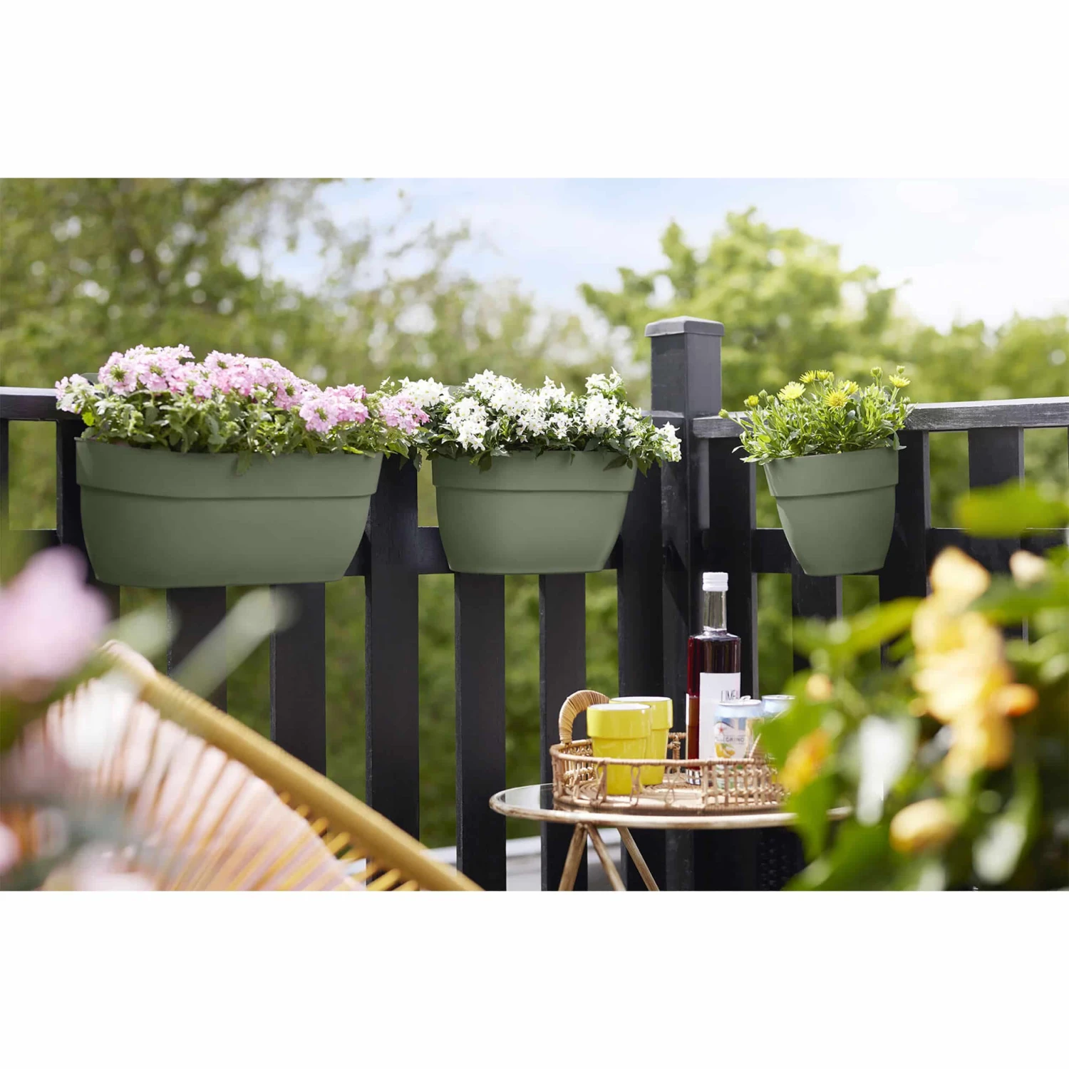 Erwecke deinen Balkon zum Leben mit dem fröhlichen Hängeblumentopf von elho. Dank der praktischen Haken kannst du ihn im Handumdrehen am Geländer (bis 6,5 cm Breite) befestigen und genauso schnell wieder abnehmen, wenn du ihn neu bepflanzen möchtest. So bleibt dein Balkon immer frisch und bunt.