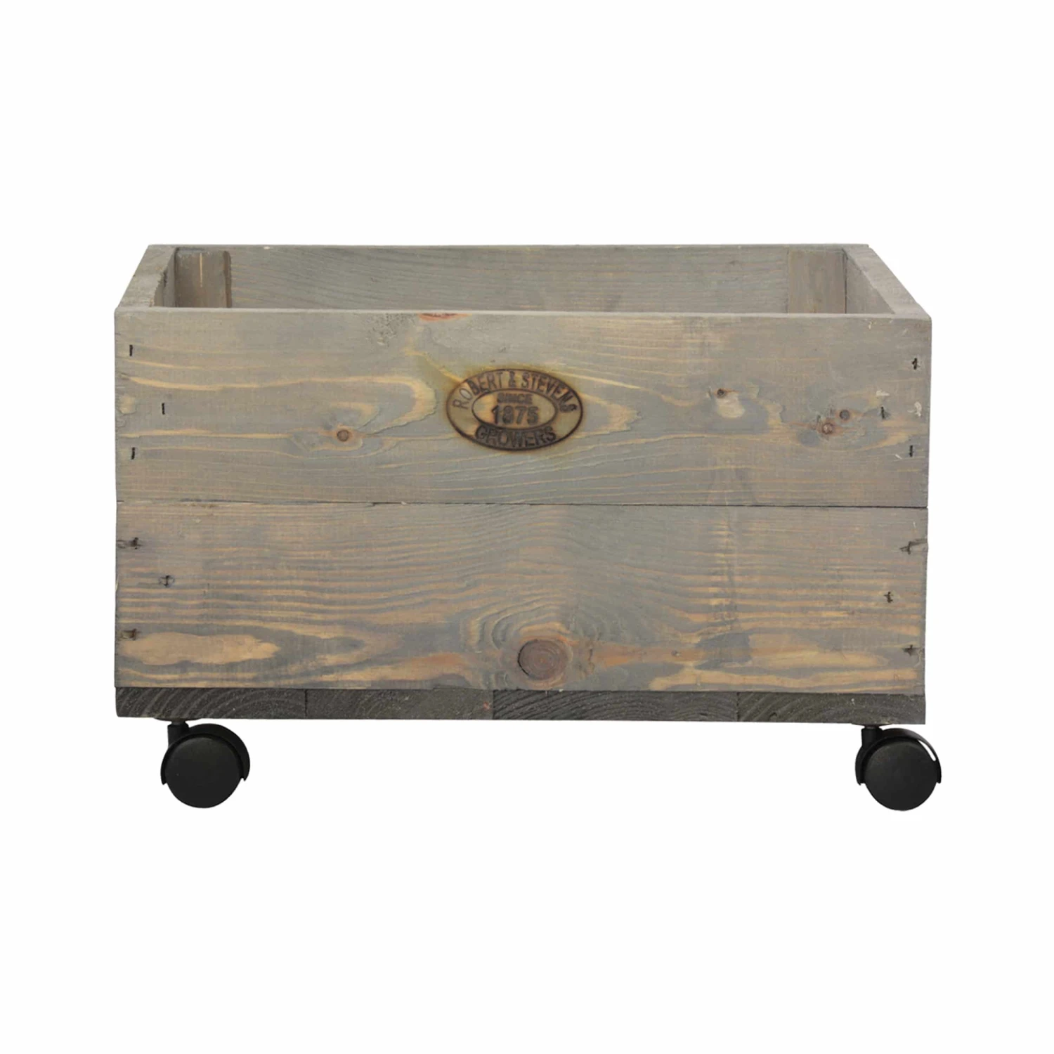 Diese schlichte Holzkiste bietet verschiedende Möglichkeiten der Nutzung. Die Kiste bietet genügend Platz, um sie mit Blumen oder Kräutern zu bepflanzen. Dank der Praktischen Schwenkrollen lässt sich der Pflanzkasten leicht und schnell verschieben. Werden die Rollen weggelassen, kann man die Holzkiste auch als rustikales Regal verwenden.
