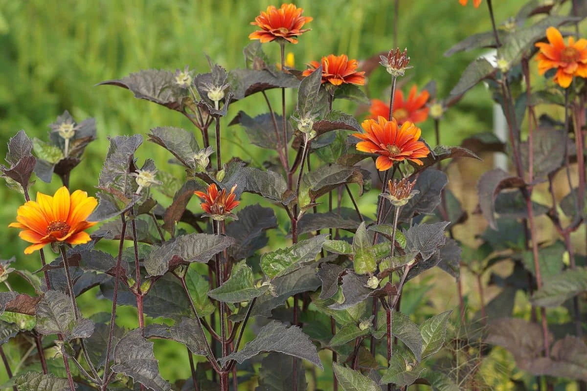Das Sonnenauge ‚Bleeding Hearts‘ (Heliopsis scabra ‚Bleeding Hearts‘) ist aufgrund seiner ansprechenden Blüten und pflegeleichten Natur eine beliebte Staude in vielen Gärten. Es zeichnet sich durch feuerrote Blüten mit einem dunklen Zentrum aus, die an kleine Sonnen erinnern. Die Blüten zeigen sich von Juni bis Oktober und ziehen zahlreiche bestäubende Insekten an. Später im Jahr färben sie sich kupferrot.