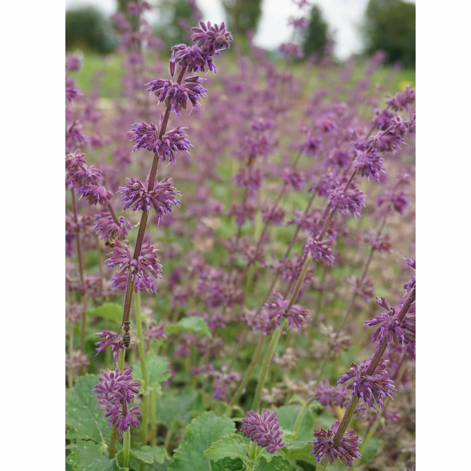 Der Quirlblütige Salbei ‚Purple Rain‘ (Salvia verticillata) ist aufgrund seiner langen Blütezeit von Mai bis September sowie seiner großen Beliebtheit bei Insekten speziell für naturnahe Gärten ein Muss. Die lippenförmigen purpurvioletten Blüten sind ein wahres Farberlebnis und bilden einen starken Kontrast zum grünen Laub der Staude.