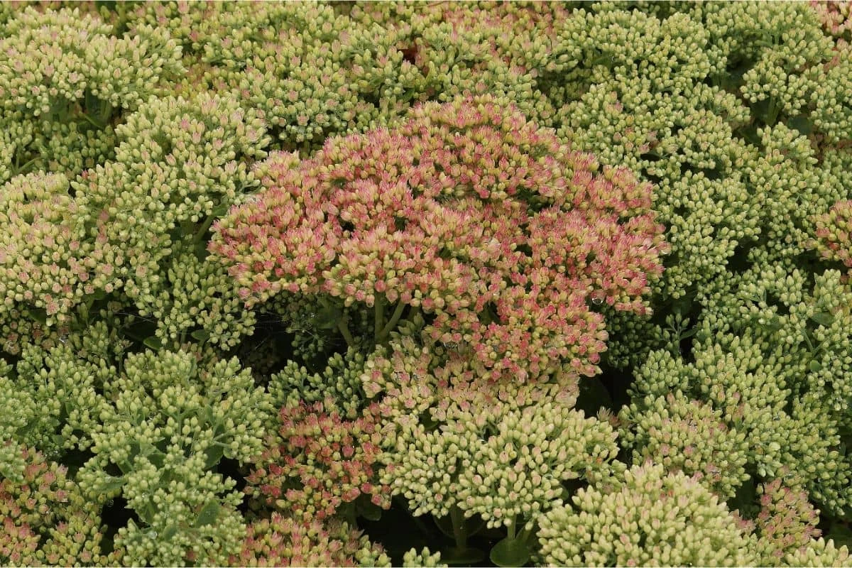 Die Hohe Fetthenne ‘Herbstfreude’ (Sedum telephium) ist eine sehr robuste, im Herbst blühende Staude mit dickfleischigen Laubblättern. Die großen, flach gewölbten Blütenschirme setzen sich aus vielen sternförmigen Einzelblüten zusammen, die zu Beginn altrosa sind und sich mit fortschreitendem Sommer rostrot färben. Auch Insekten schätzen Sedum telephium sehr: Vor allem Hummeln und Bienen nutzen das reichhaltige Nahrungsangebot der Staude und komplettieren damit ihren schönen Anblick.