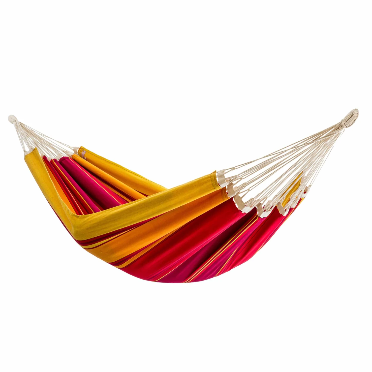 Holen Sie sich Urlaubsfeeling zu sich nach Hause. Die Hängematte BELEZA bietet ausreichend Platz für ein oder zwei Personen.